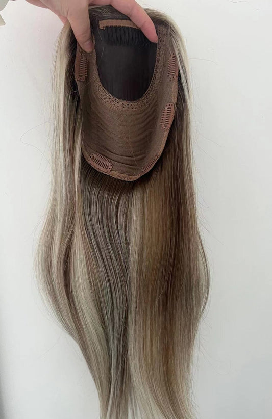 Custom European Rooted Brown Blonde Human Hair Silk Top Topper