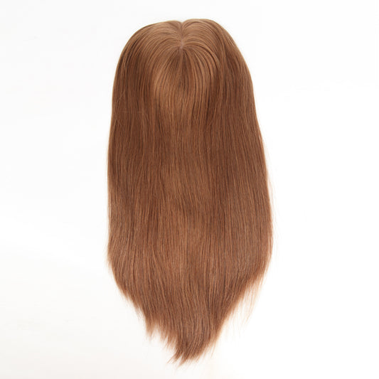 Stock European #8 Natural Straight Double Drawn Human Hair Topper 16" with Silk Top 130% Density