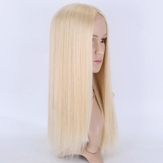 Stock Lace Front European Lightest Blonde Natural Straight Human Hair Topper