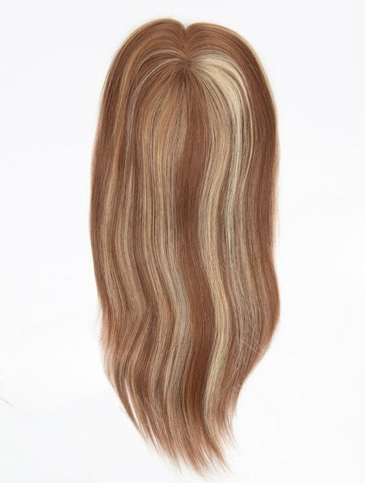 Stock European Brown with Blonde HL Straight Human Hair Mono Top Topper
