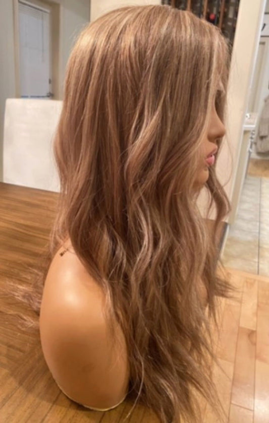 Custom Full Lace Glueless European Brown Balayage Highlights Wavy Human Hair Silk Top Wig
