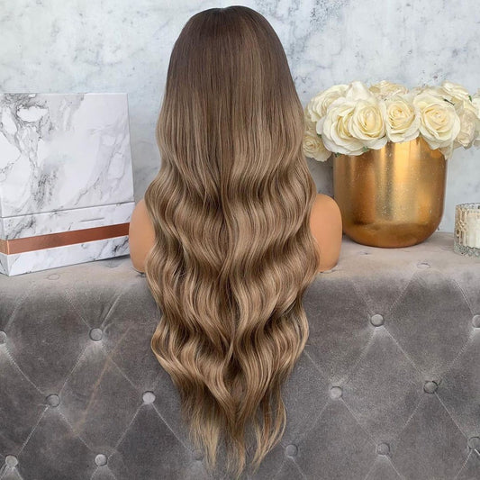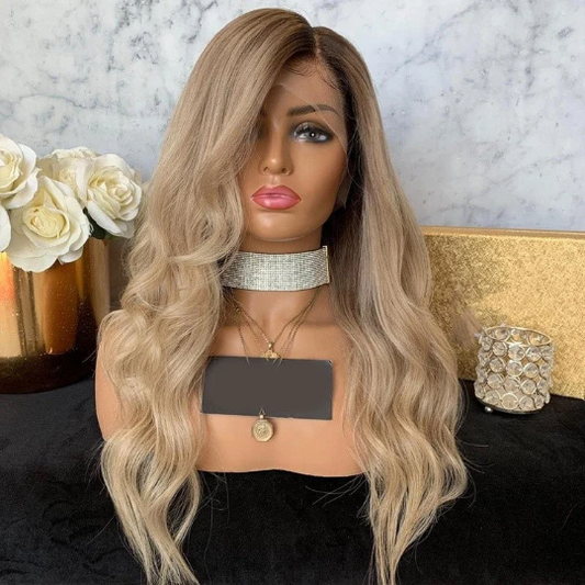 Custom Full Lace Glueless European Blonde Ombre Wavy Human Hair Wig