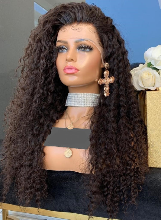 Custom Full Lace Glueless Brazilian Brown Ombre Curly Human Hair Wig
