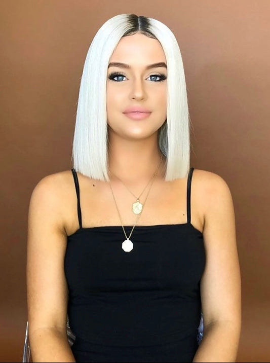 Custom Full Lace European White Ombre Straight Blunt Cut Human Hair Wig