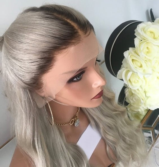 Custom Full Lace Glueless European Gray Ombre Straight/Body Wave Human Hair Wig