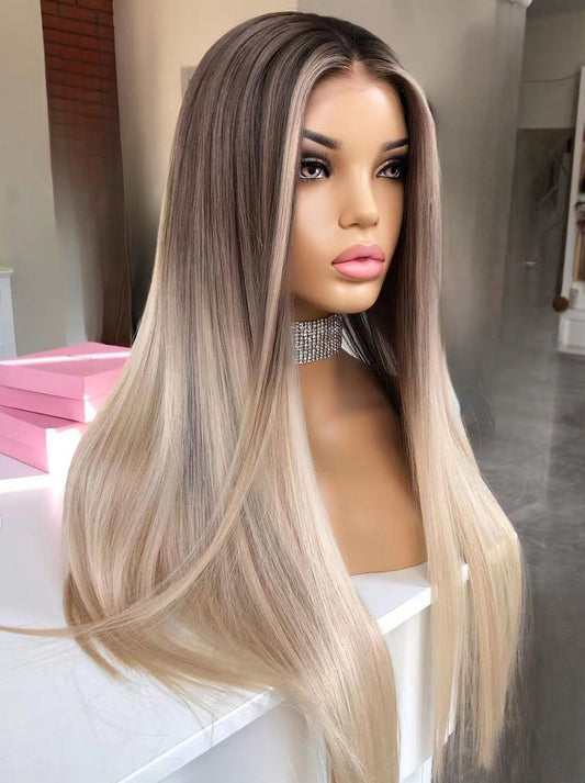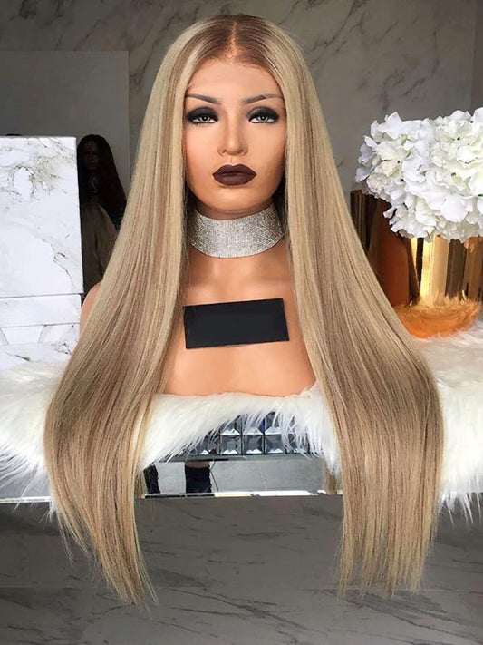 Custom Full Lace European Blonde Ombre Straight Human Hair Wig