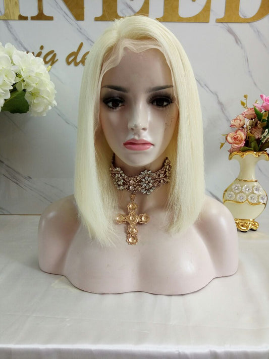 Custom Full Lace European Platinum Blonde Straight Human Hair Silk Top Wigs