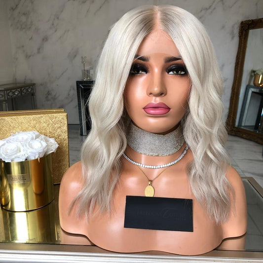 Custom Full Lace European Platinum Body Wave Double Drawn Human Hair Silk Top Wig
