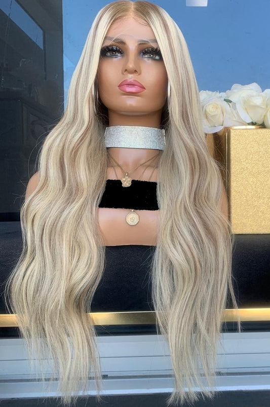 Custom Full Lace European Blonde Balayage Wavy Double Drawn Human Hair Wig