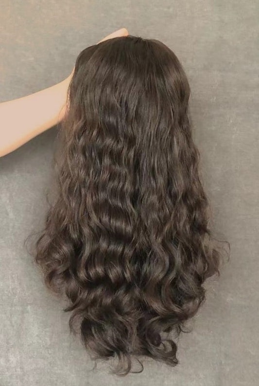 Stock European Brown Blend Wavy No Layer Human Hair Topper 16" with Silk Top 130% Density