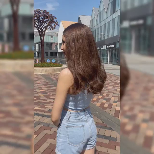 These stock Jewish wigs are made from 100% European Virgin Human Hair on a Lace Top Jewish Cap, adjustable straps in the back, and combs. Hair color #4 with #10 Highlights with Slight Layer, hair density 130%, cap size medium and large. You can style the wig any way you want.