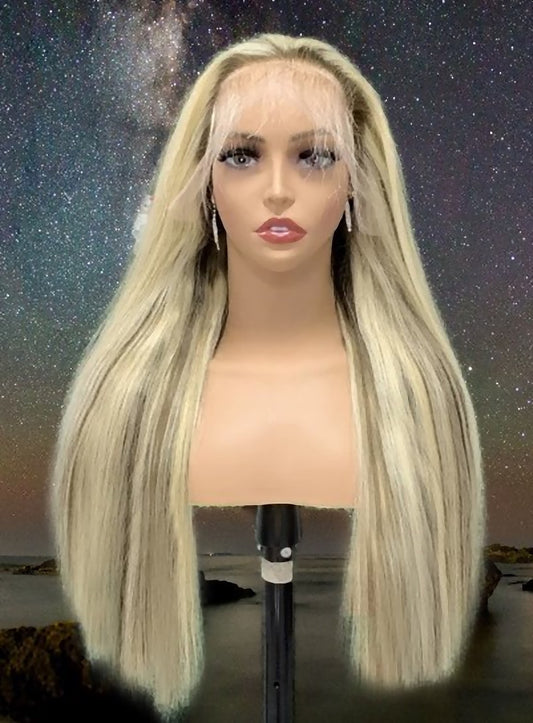 Stock Lace Front Malaysian Blonde Mix with HL Straight Human Hair Wigs