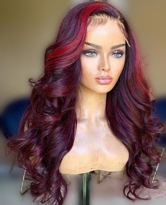 Lace Front Brazilian Wine with HL Body Curl Human Hair Wig