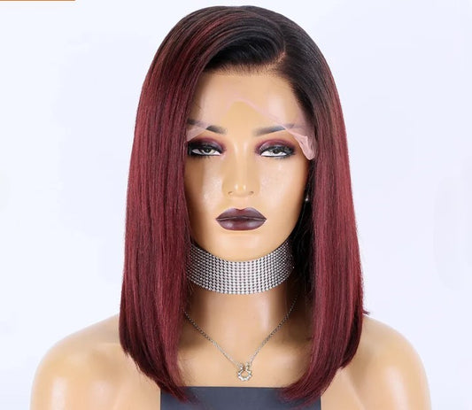 Stock Lace Front Brazilian Wine Ombre Straight Bob Human Hair Wigs