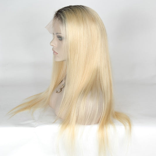 Custom Lace Front Brazilian Remy Blonde Ombre Straight Human Hair Wig