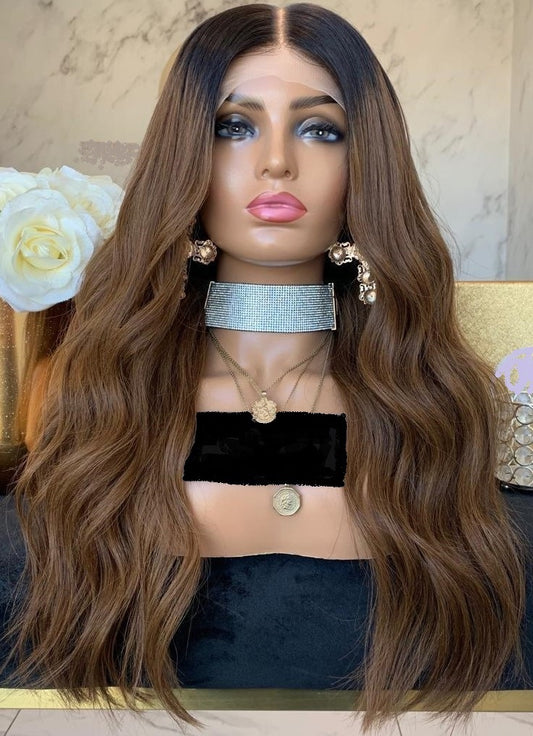 Custom Lace Front Brazilian Natural Color Ombre Wavy Human Hair Wigs