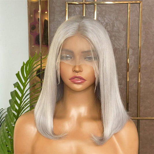 Lace Front Brazilian Grey Straight Bob Human Hair Wigs